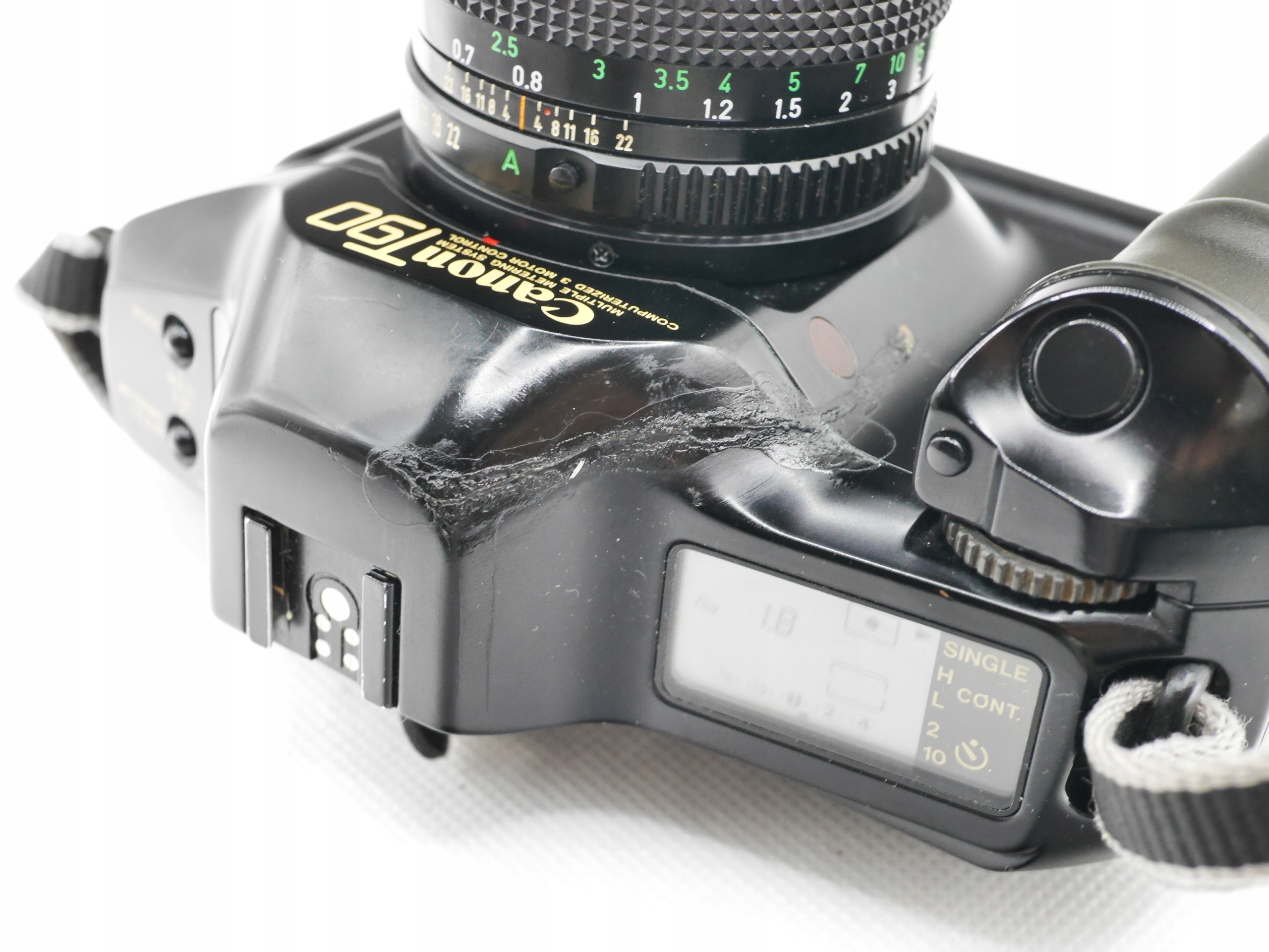 Аналоговая зеркальная камера Canon T90 с объективом 50 мм 1,8. Если вы уже здесь, вы знаете, что ищете. Корпус визуально как на фото, объектив без царапин, полностью рабочий, но раз в несколько кадров может выскакивать подсказка. Чаще всего долго, но может без проблем отснять весь рулон и окончательно закатать его в кассету. Все это можно собрать, использовать как есть или обслуживать.