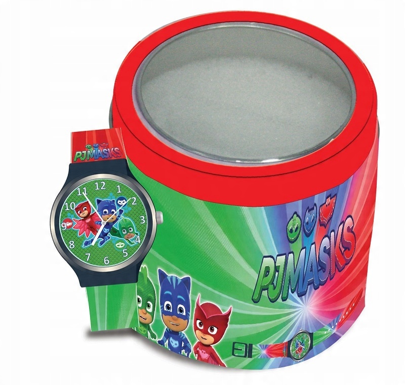 Аналоговые часы с мотивом PJ Masks. Длина часов с ремешком: 22,5 см. Диаметр циферблата с корпусом: 3,5 см.