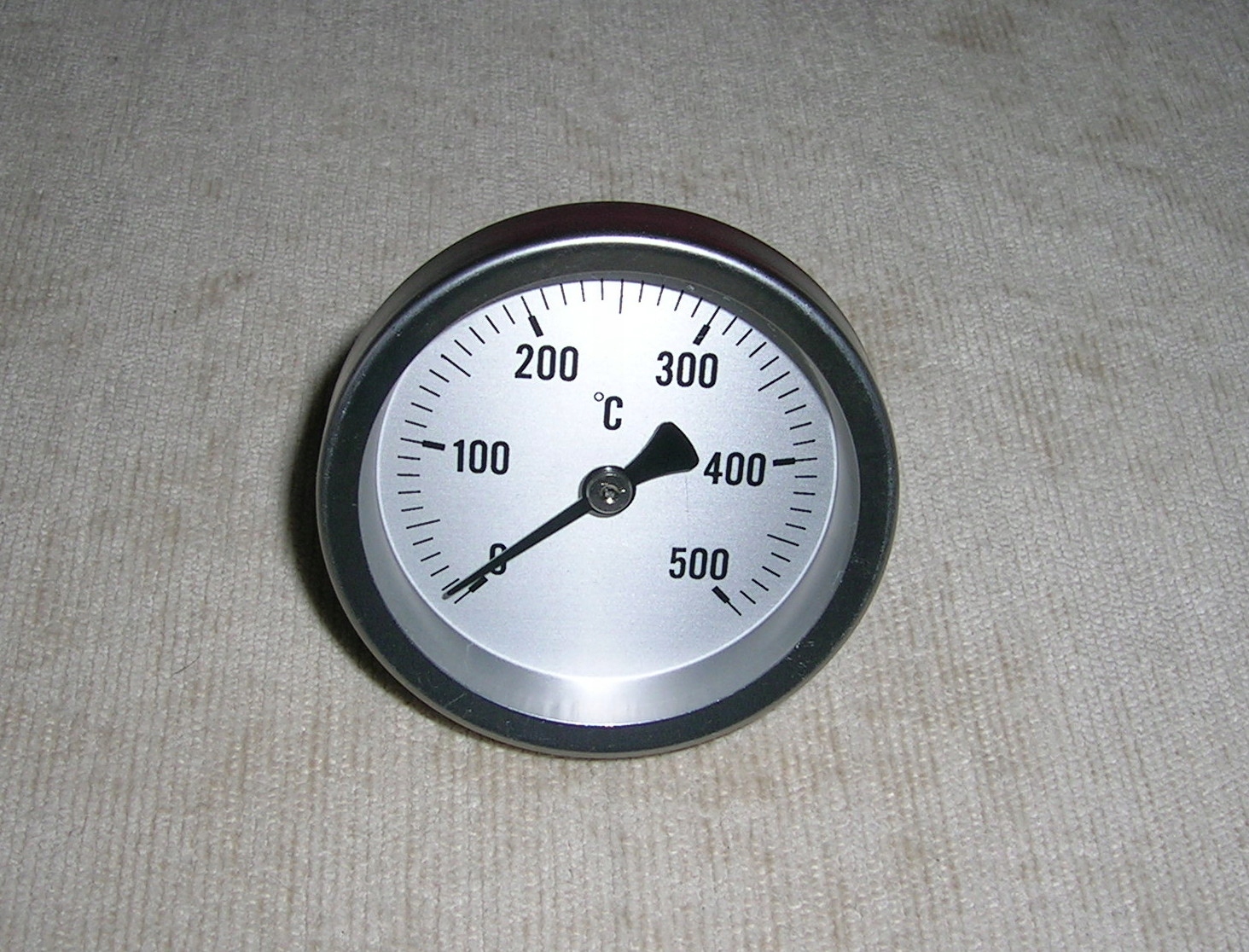 Термометр механический биметаллический, установка в отверстие, гайка М20 в комплекте, диапазон измерения 0...500С, диаметр шкалы 63мм. Чаще всего применяется в системах отопления и каминах.