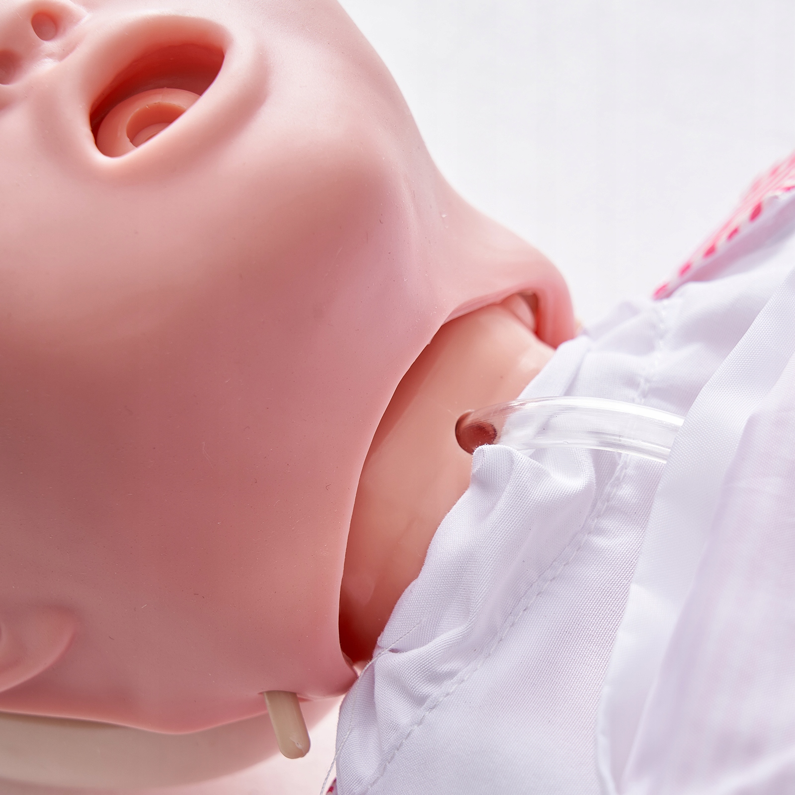 Этот уход за больным манекен может имитировать нормальные и заблокированные дыхательные пути, обеспечивая практику в проникновении дыхательных путей, удушье, расширение грудной клетки и стандартные процедуры RKO.
