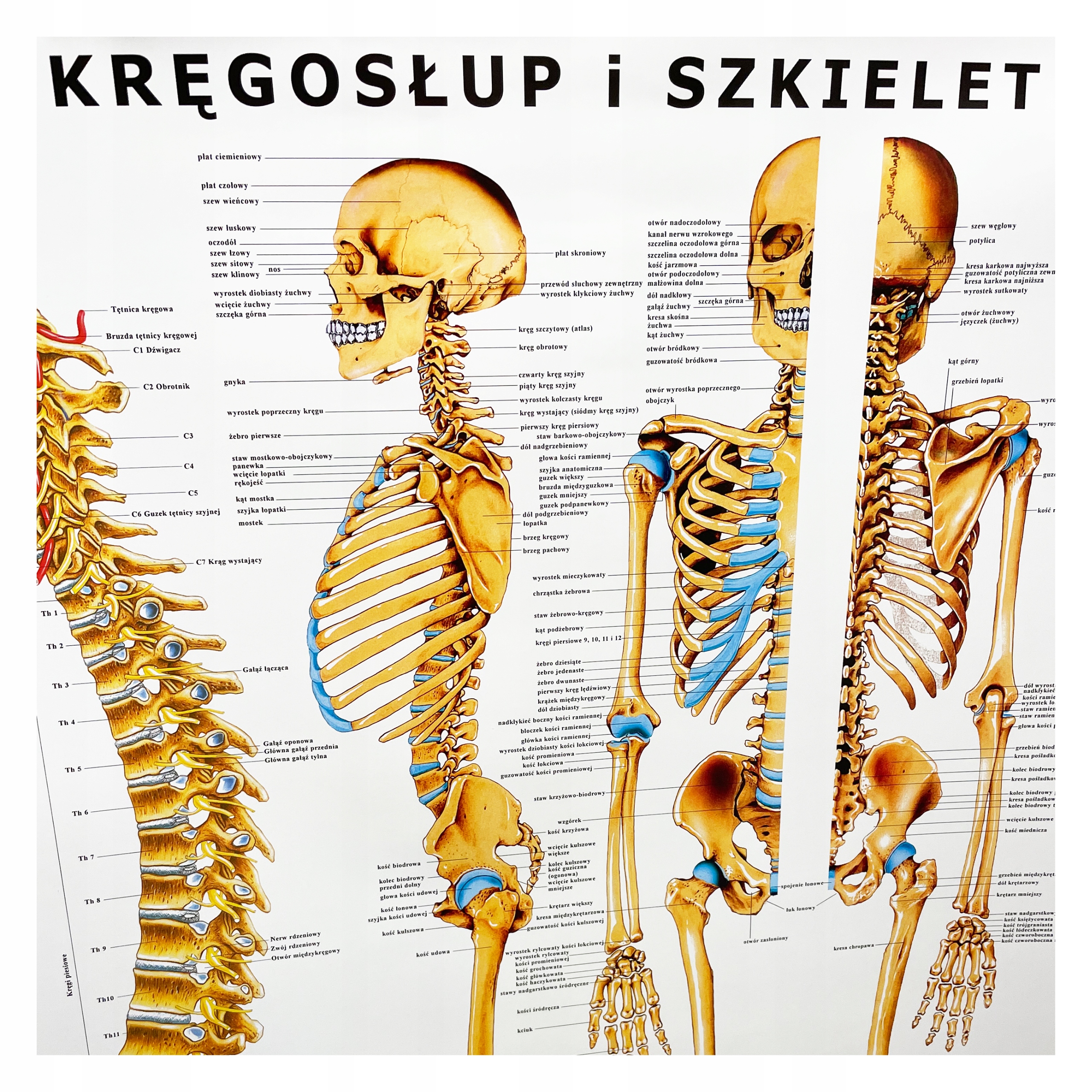Таблица содержит точно обозначенные кости и хрящи на польском языке. Это отличное учебное пособие при изучении анатомии человека. Анатомическая схема создана для врачей, физиотерапевтов, массажистов и студентов-медиков.