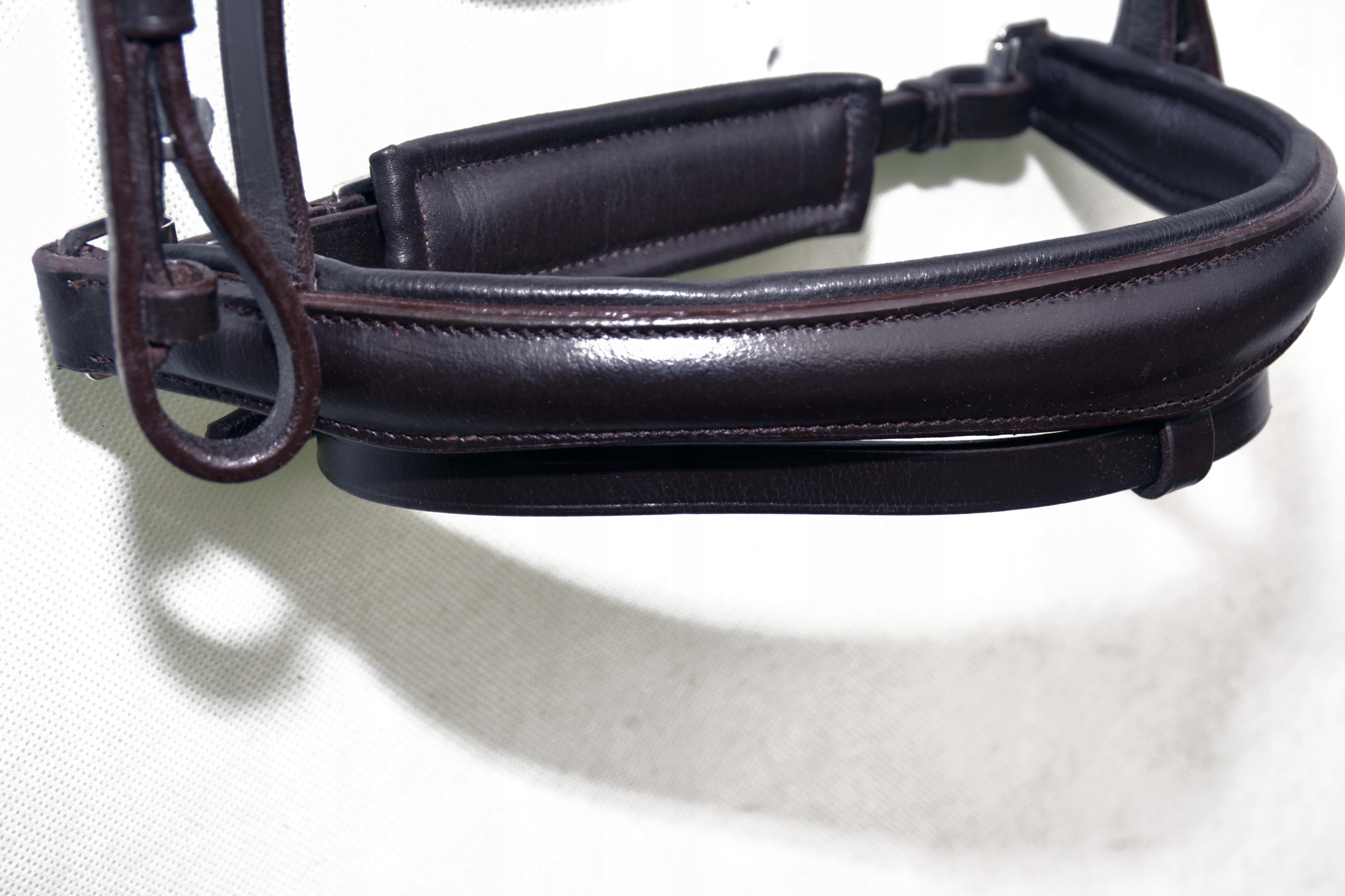 Уздечка анатомического профиля, ПОЛНЫЙ размер Уздечка изготовлена на шорной фабрике в Англии. Изготовлен из коровьей кожи высшего качества, очень мягкой и приятной на ощупь, полностью выполнен из английской кожи, затылочная часть и надбровная часть обтянуты мягкой кожей для предотвращения потертостей. Уздечка застегивается и регулируется устойчивыми пряжками из очень хорошей нержавеющей стали. Смело покупайте. Уникальная уздечка, единственная на польском рынке.