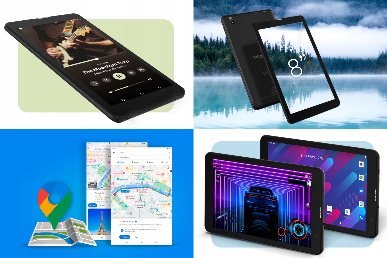 Что привлекает внимание в планшете EAGLE 806 состоит из двух размещенных в корпусе динамиков, каждый мощностью 1 Вт. Благодаря им смотреть фильмы или слушать музыку будет чрезвычайно приятно, а 8-дюймовый планшет Kruger&Matz станет вашим незаменимым спутником