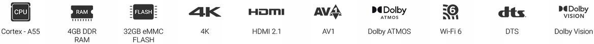 Box R Plus оснащен четырехъядерным процессором Cortex A55, 4 ГБ оперативной и 32 ГБ встроенной памяти. Кроме того, он поддерживает Bluetooth 5 и Wi-Fi 6. Имеются все сертификаты, включая Google и Netflix.