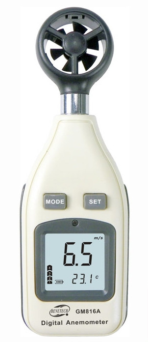 Высококачественный измеритель скорости ветра, анемометр — практичный прибор для измерения интенсивности и силы ветра и движения газов.