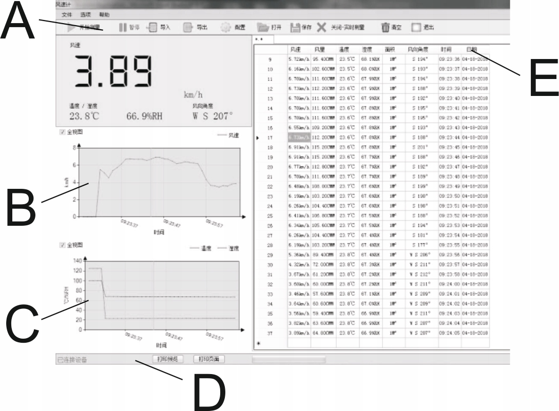 Кнопка 1 переключает режимы MAX/AVG/MINКнопка 2 для подтверждения ВВОД Кнопка 3: Удержание результата измерения (УДЕРЖИВАТЬ)Кнопка 4: переключение между скоростью и расходом воздуха Кнопка 5: короткое нажатие — изменение единицы измерения (UNIT), длительное нажатие включает/выключает звук клавиатуры.Кнопка 6: включено , короткое нажатие, чтобы включить/выключить подсветку, нажмите и удерживайте, чтобы выключить устройство.Кнопка 7: нажмите, чтобы изменить единицы измерения температуры ℃/℉, нажмите и удерживайте, чтобы выбрать измерение температуры или влажности.Кнопка 8: установка площади потока (AREA), интервала записи данных (SAMPLE), считывание номера записи. Кнопка 9: вход в режим чтения/записи/регистрации данных.Кнопка 0: записывает одну опорную точку или входит в интерфейс регистрации данных (REC). .Кнопка: сохранение фрагмента данных или вход в интерфейс записи данных.USB-интерфейсЖК-дисплей .Разъем (совместите с отверстием разъема при подключении датчика↓). Соединительный кабель. li>Эргономичная рукоятка датчика.Регулируемая длина шейки датчика Шестилопастной вентилятор.