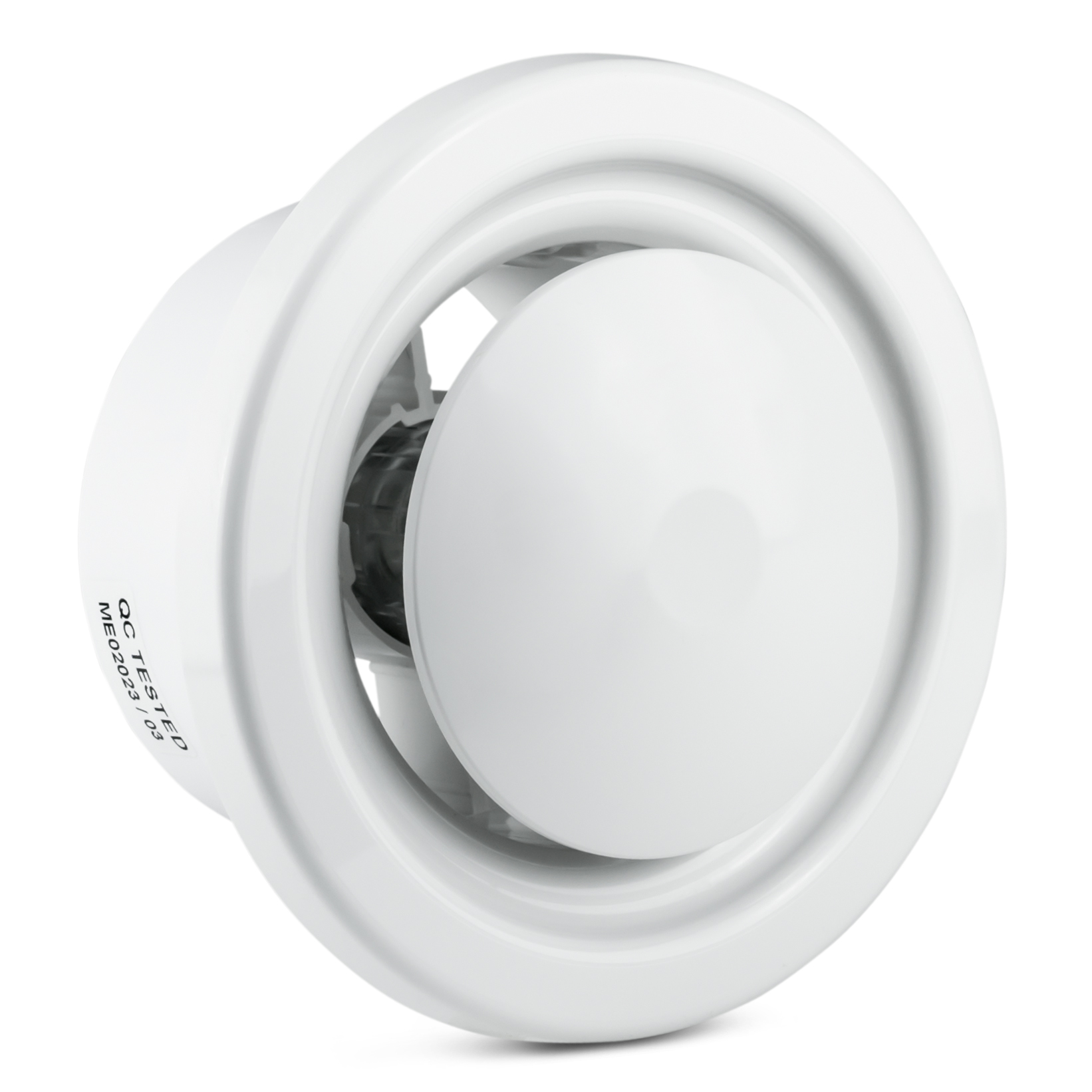 Подвижная пластина, встроенная в диффузор, точно определяет направление воздушного потока. Он также служит эстетическим завершением системы вентиляции.