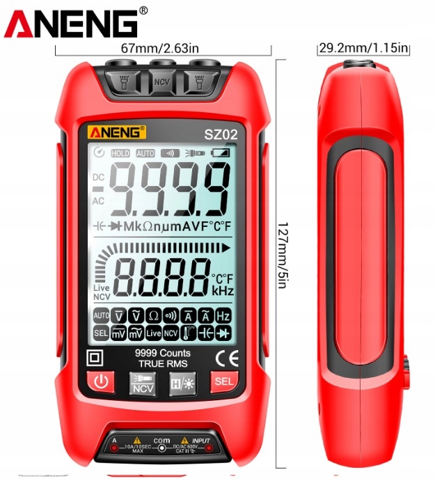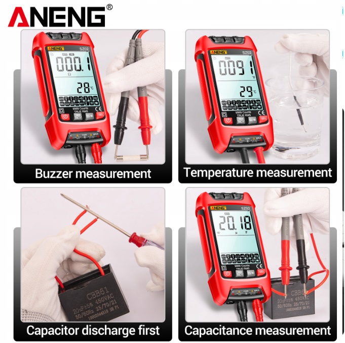 - Интеллектуальный мультиметр с множеством функций: может измерять переменный/постоянный ток, переменное/постоянное напряжение, сопротивление, емкость, температуру, частоту, проверку целостности и диодов, обнаружение пожарного провода и т. д.
