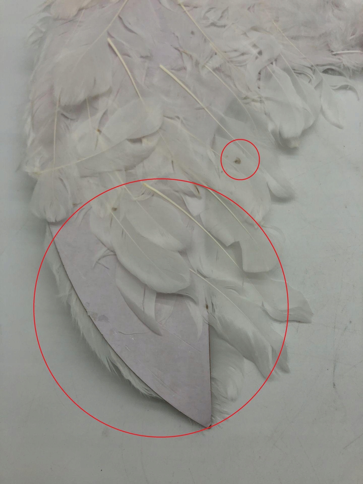 - Дополнительное описание: следы использования в форме грязи. У продукта отсутствует перья в местах, отмеченных на фотографиях.