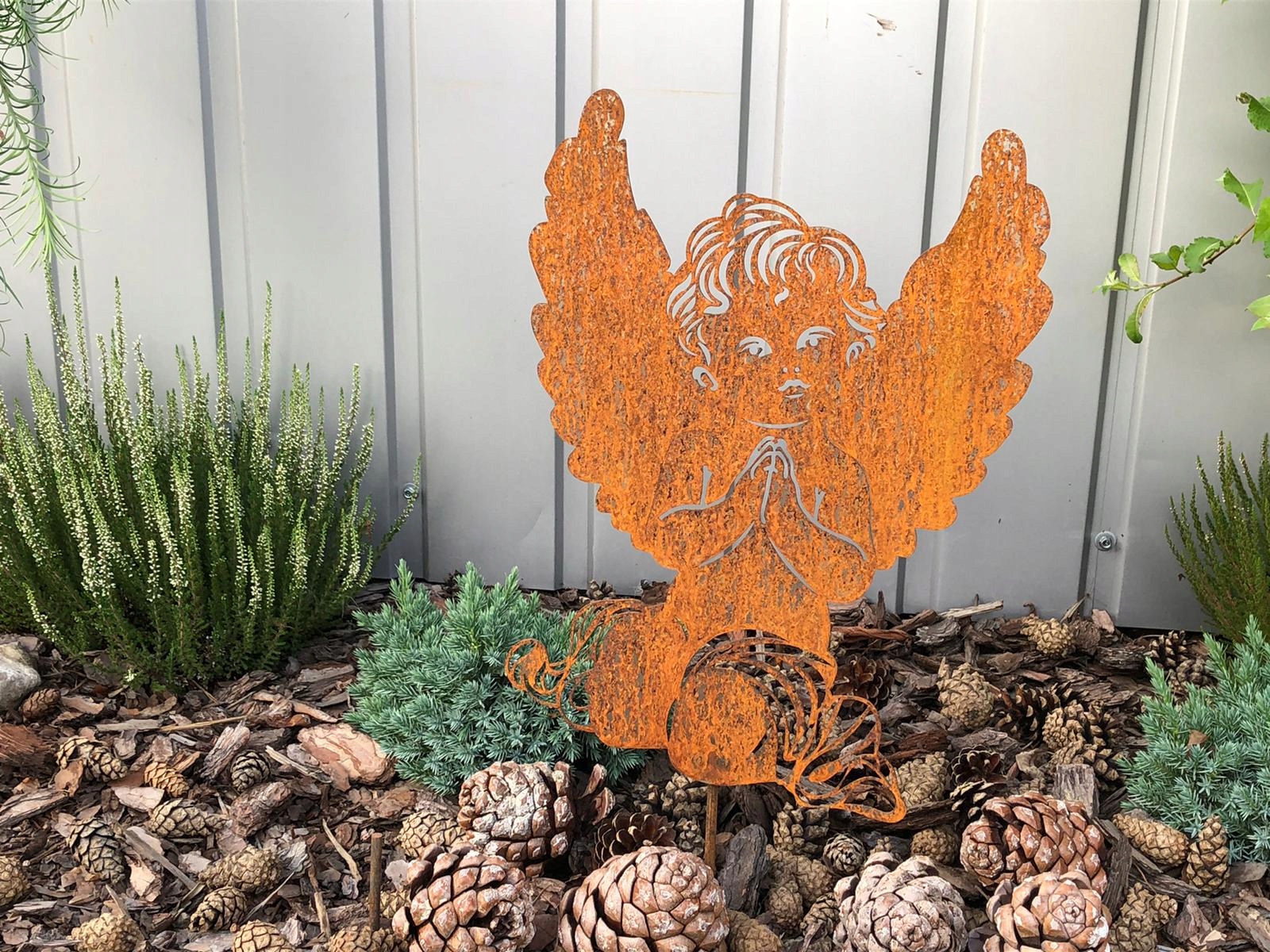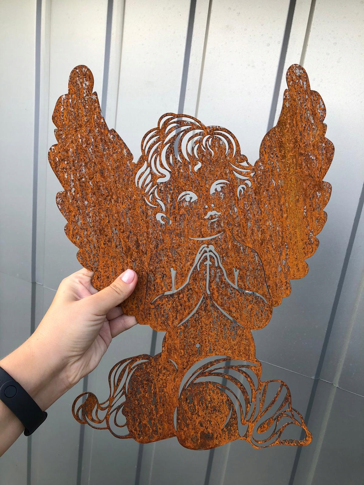 Ангел с ручками, декор ангел, кортен, 38 см