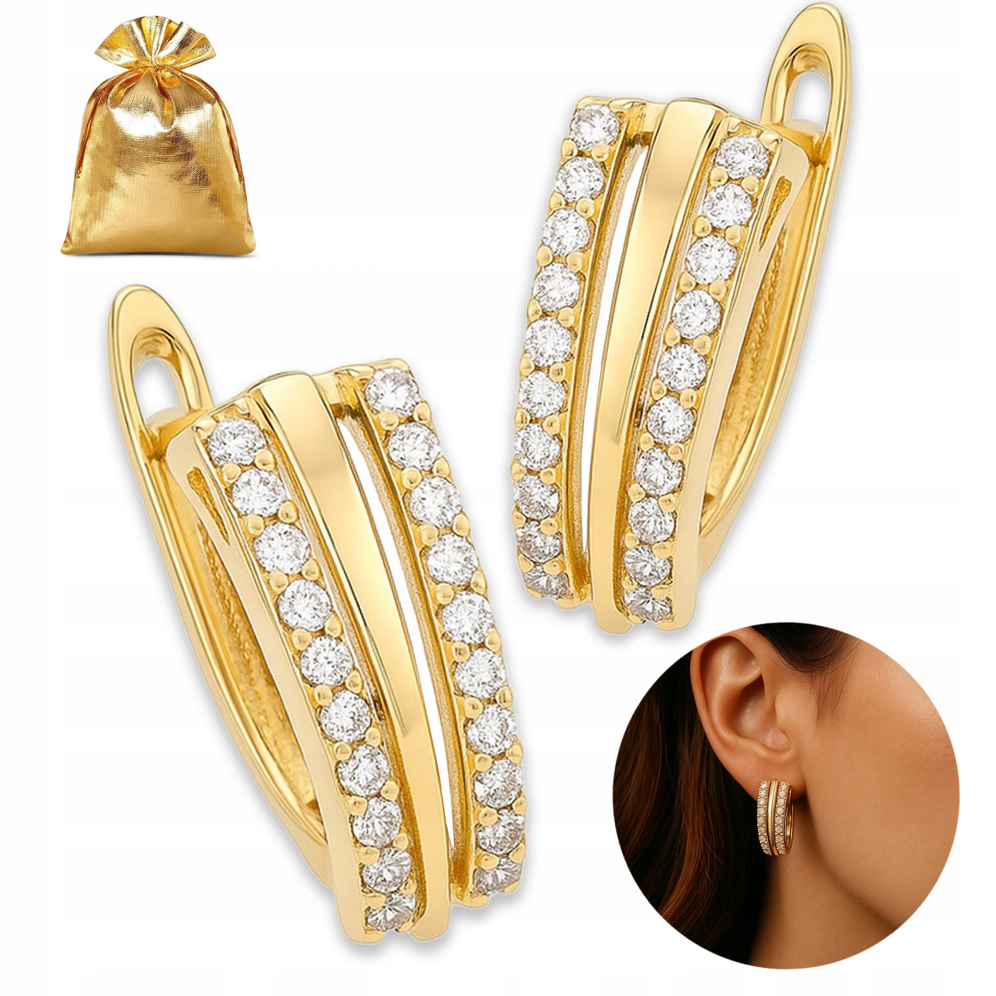 АНГЛИЙСКИЕ ЗОЛОТЫЕ СЕРЬГИ ИЗ ХИРУРГИЧЕСКОЙ СТАЛИ С ЦИРКОНИЯМИ, ЭЛЕГАНТНЫЕ