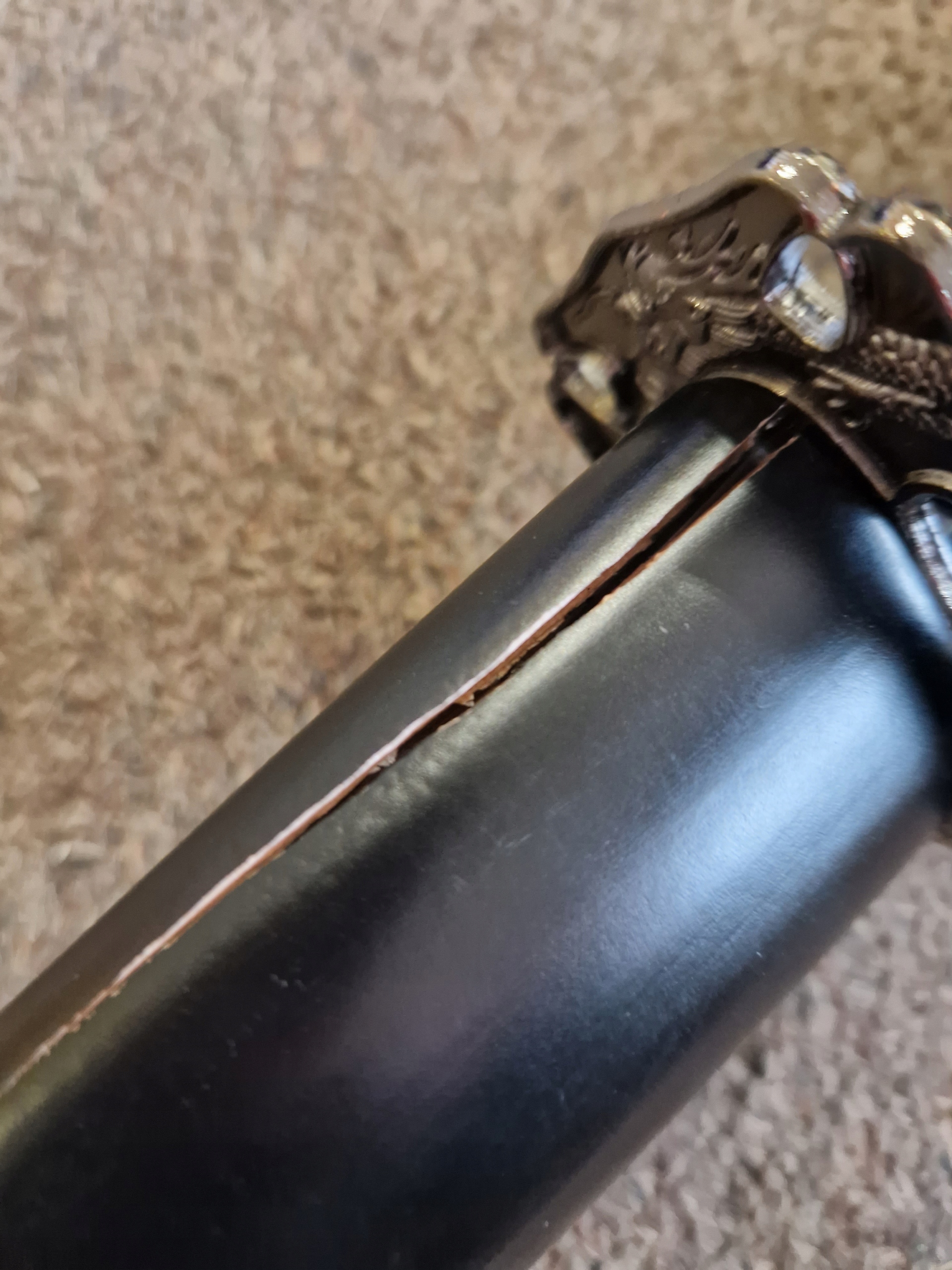 НОЖНИ/ САЯ: твердая древесина - лакированная хлопчатобумажная тесьма (сагео) - ручная гравировка с мотивом дракона