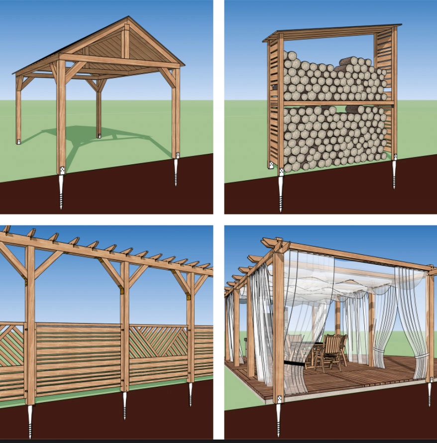 Ввинчивающееся основание для использования в различных деревянных конструкциях без необходимости устройства бетонного фундамента, что экономит время, необходимое для высыхания бетона.