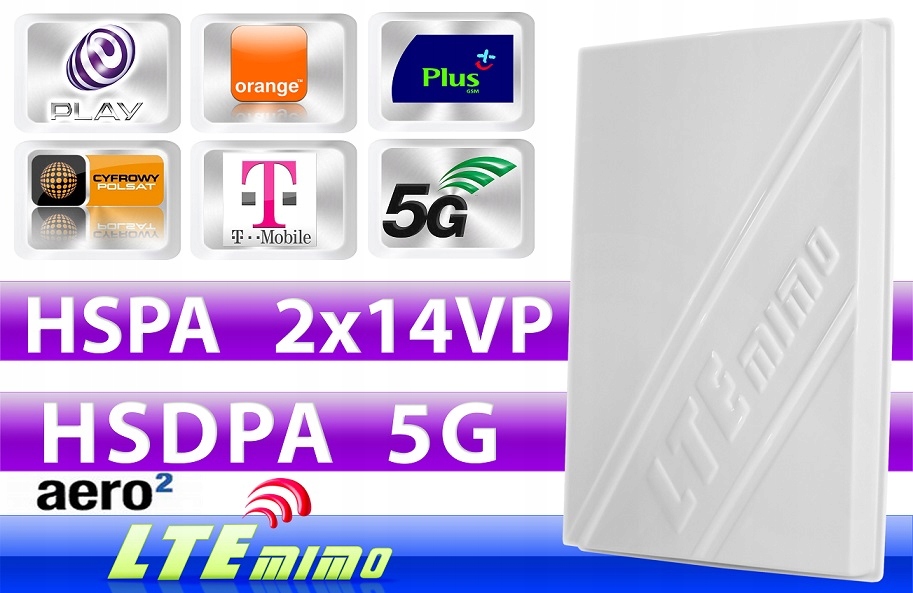 Антенна специально разработана для услуги доступа в Интернет 5G в сетях PLAY, CYFROWY POLSAT, PLUS GSM, ORANGE, T-mobile, AERO2 и подходит для операторов GSM со всего мира.