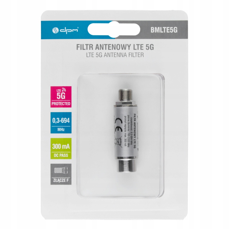 Антенный фильтр PL LTE 5G. Частота: 0,3-694 МГц. Полоса затухания: 700-2200 МГц. Передача напряжения: макс. 300 мА. 1 вход F. 1 выход F. IP20. Упаковка: блистер Антенный фильтр EN LTE 5G. Частота: 0,3-694 МГц. Полоса демпфирования: 700-2200 МГц. Проход постоянного тока: макс. 300 мА. 1 вход F. 1 выход F. IP20. Упаковка: блистер