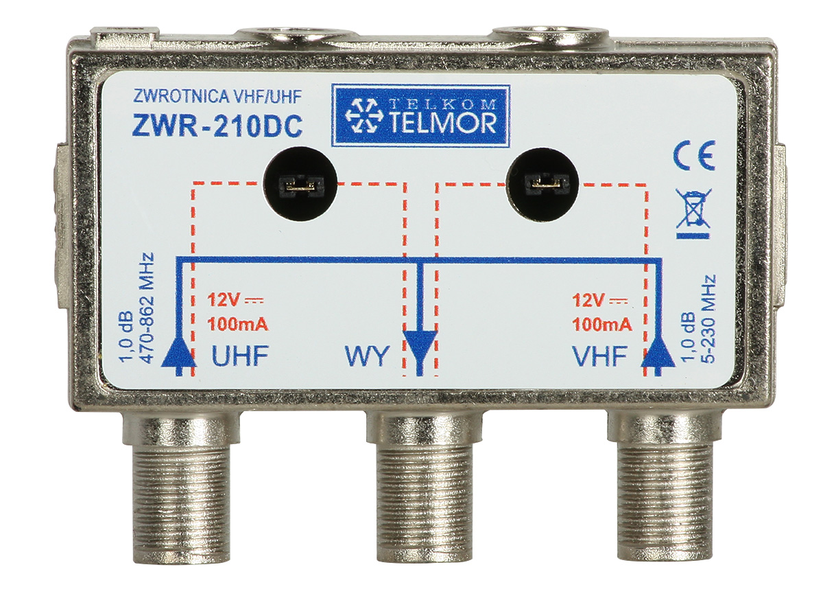 Двухвходовой кроссовер ZWR-210DC используется в качестве элемента, суммирующего сигналы FM/VHF (5-230 МГц) и UHF (470-790 МГц) антенн. Он предназначен для работы на открытом пространстве. Его следует закрепить на антенной мачте рядом с антенным комплектом. Конструкция корпуса предотвращает попадание дождя на кроссовер.