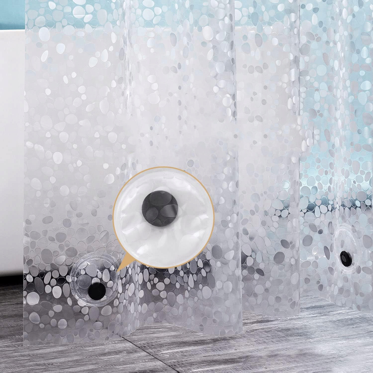 🛁Материал: По сравнению с другими занавесками для душа толщиной 0,15 мм, занавеска для душа толщиной 0,2 мм намного лучшего качества. Наша занавеска для душа изготовлена из экологически чистого материала EVA, нетоксичного и не имеющего запаха, что обеспечивает здоровое душевое пространство. Он устойчив к высоким температурам и не деформируется при нагреве, а также более гибок, чем стандартные душевые занавески из материала PEVA.