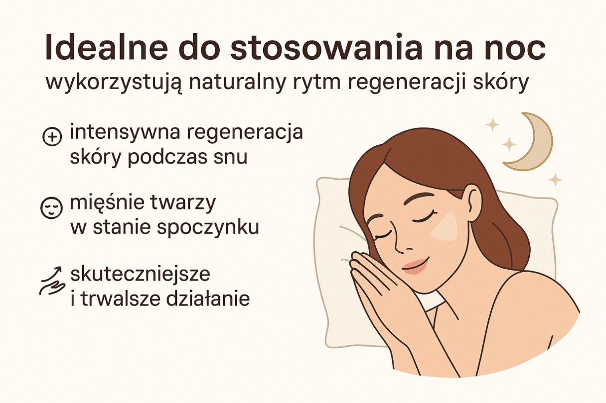 ✅ Ночью - ночное применение позволяет использовать естественный ритм регенерации кожи -Сон, мышцы лица расслаблены, что способствует гладкости и напряжению кожи.