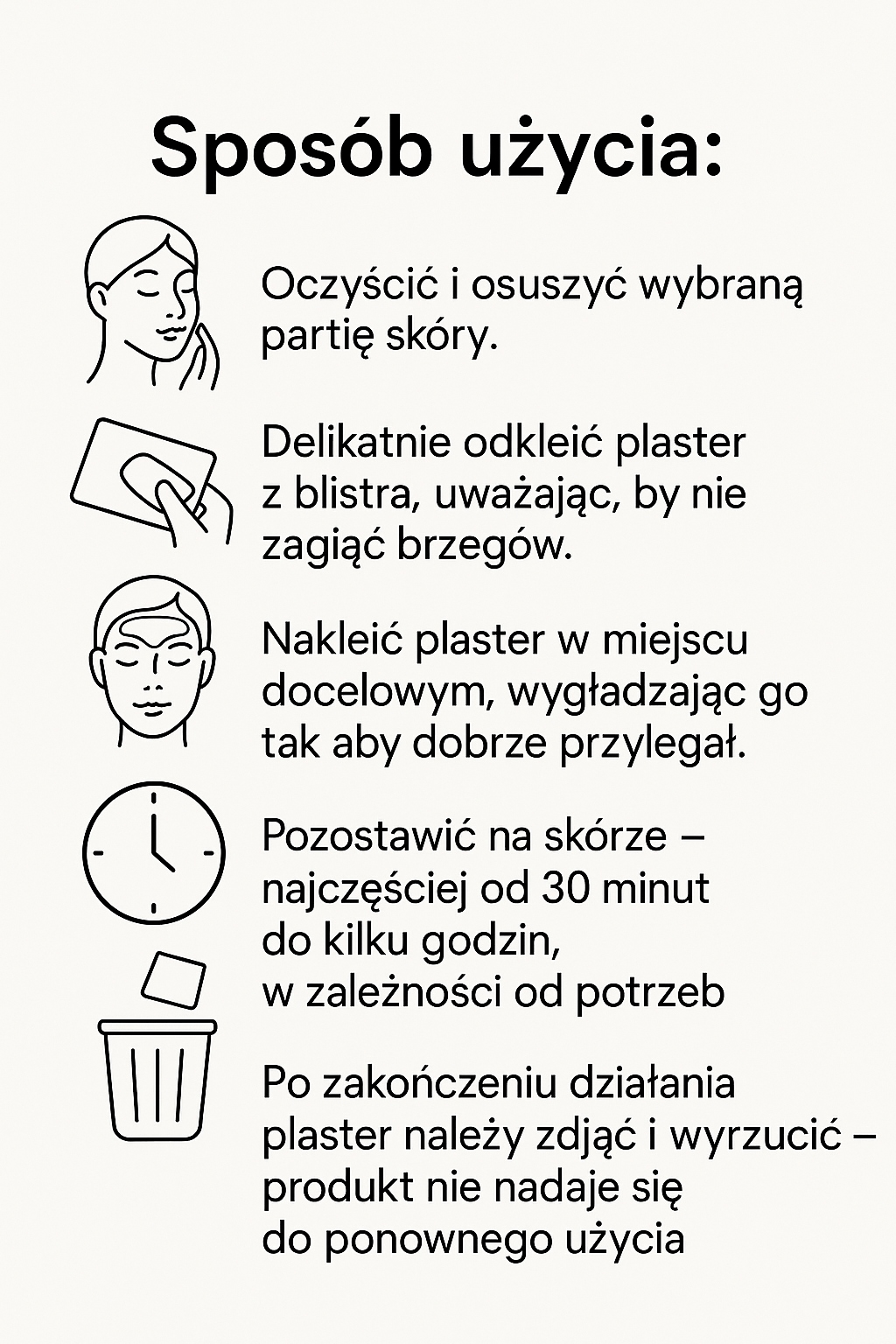 Размеры патча позволяют точное соответствие с разными частями лица - идеально подходит для щек, области глаз, лба или подбородка.