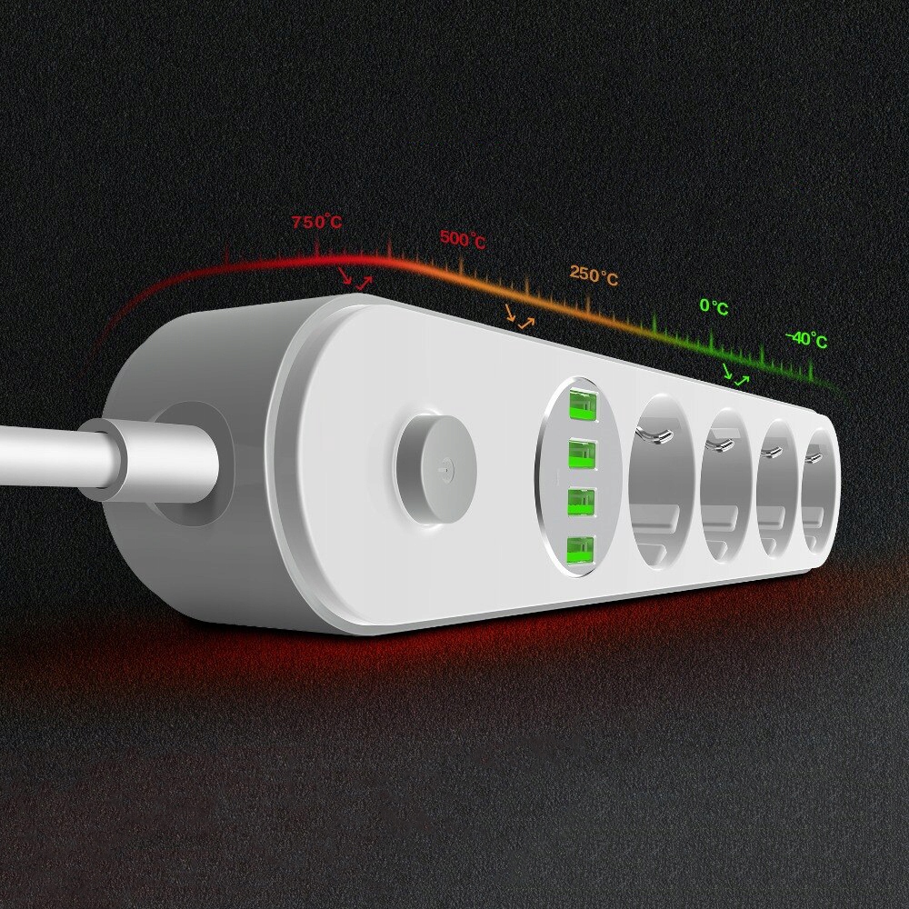имеет анти -Слипные прокладки , заземление Каждый из сокетов, основная кнопка Power температурный сопротивление (макс. 850 °), безопасность каждого из соединителей мощности (подвижная пробка) и против -ревазия.