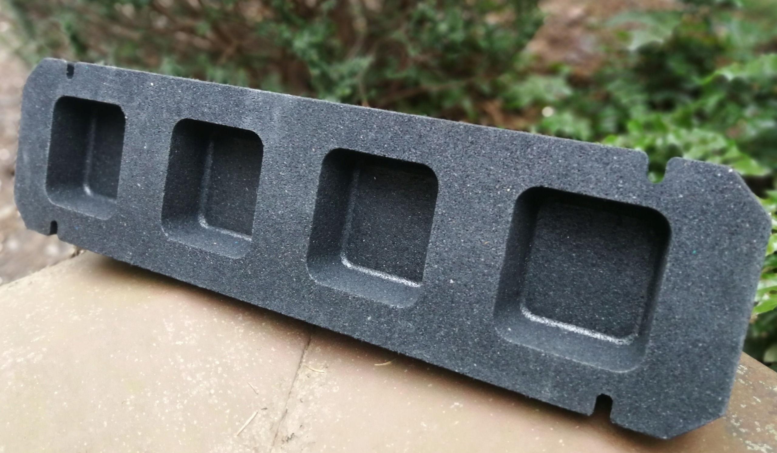 Основы изготовлены из отсортированной SBR -резины от переработки, в которой погружается в алюминиевый гид для исправления устройства. Ширина профиля составляет 4 см, а длина 60 см.