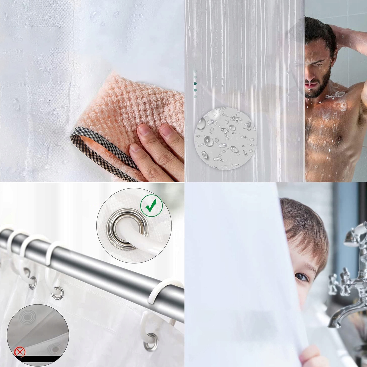 ✅Водонепроницаемый: Благодаря хорошей гидрофобности прозрачная занавеска для душа имеет гладкую поверхность, и капли воды могут легко скатываться. p>