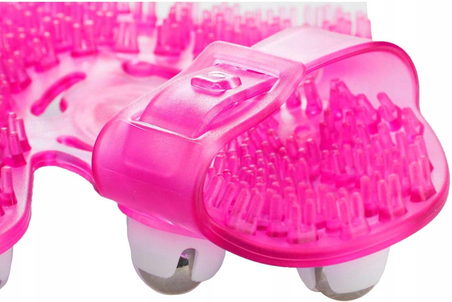 Девять вращающихся металлических шариков прекрасно укрепляют кожу. . Дополнительная застежка предотвращает выскальзывание массажера из руки и облегчает использование массажера.