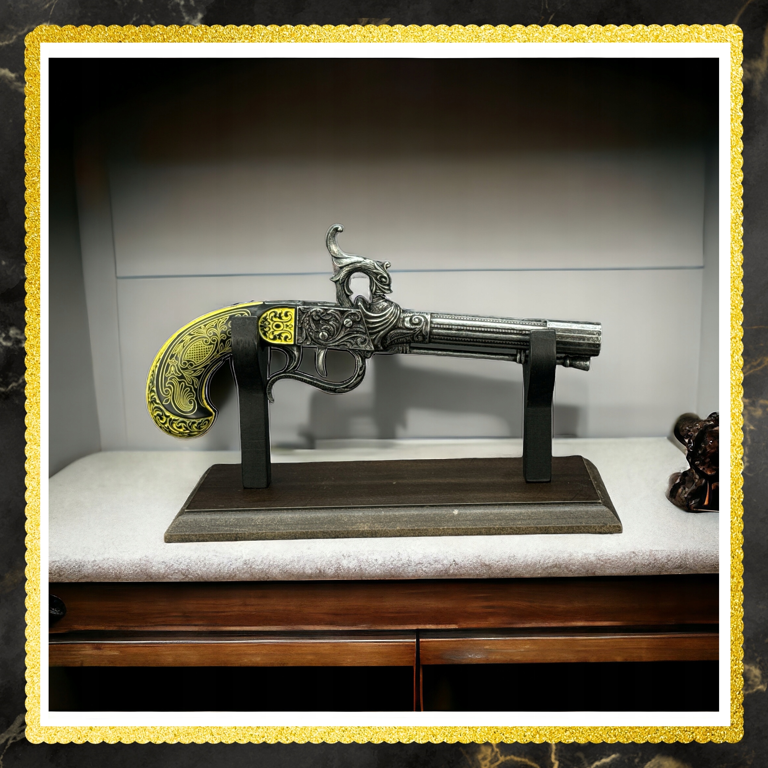 ❇️Пистолет — уникальное предложение для любителей истории, коллекционеров и людей, ищущих оригинальные элементы интерьера. Это идеальный подарок на разные случаи жизни, особенно для любителей военного дела и истории. Его реалистичный внешний вид и добротное качество изготовления делают его центром любого помещения, привлекая внимание и вызывая интерес гостей. Это не только декоративный предмет, но и повод для увлекательных бесед о военной истории и технике.
