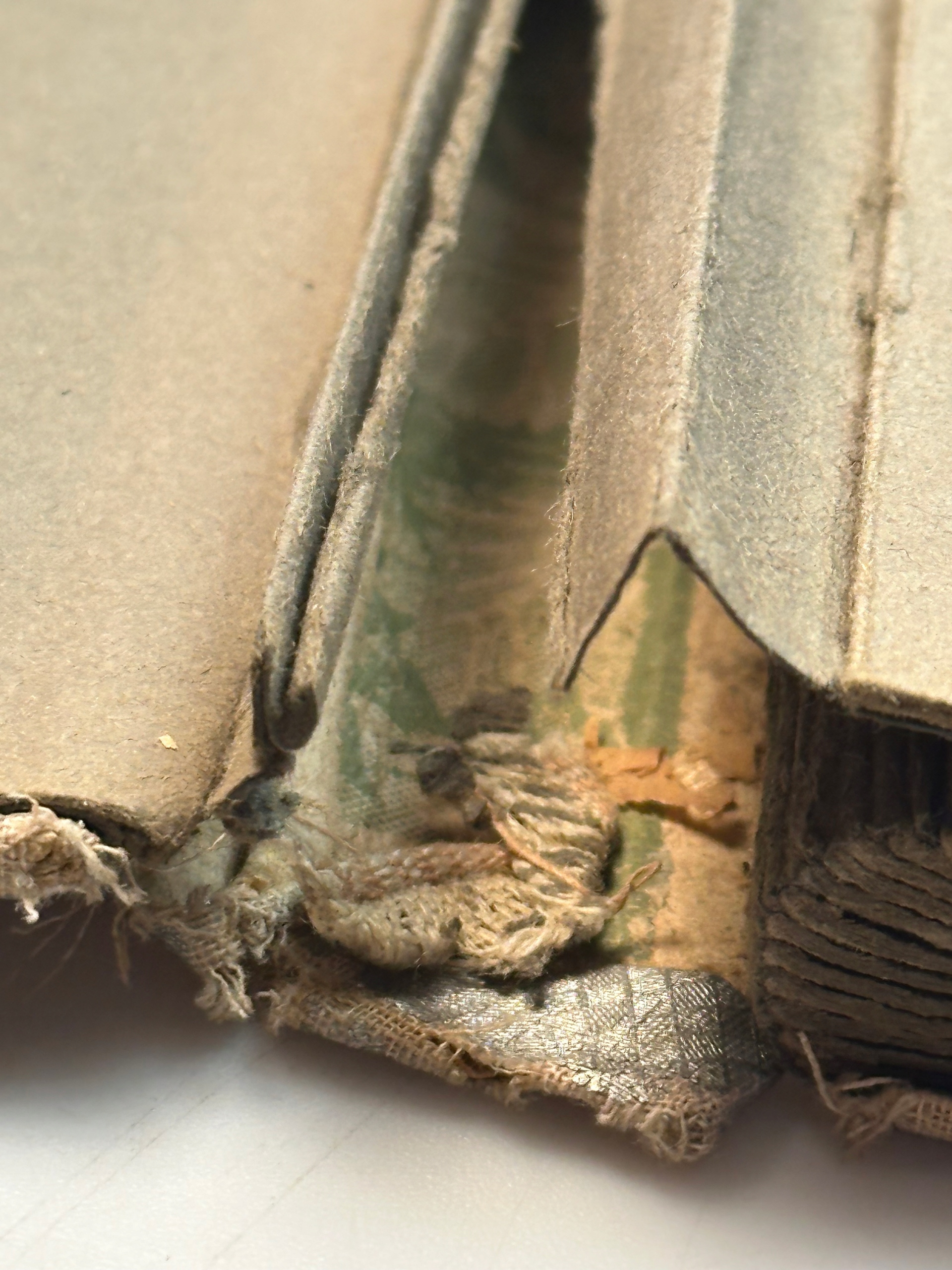 Состояние видно на фотографиях, обложка слегка потерта, приложение погнуто внизу, страницы частично оторваны от корешка, в целом в хорошем состоянии, корешек поврежден внизу