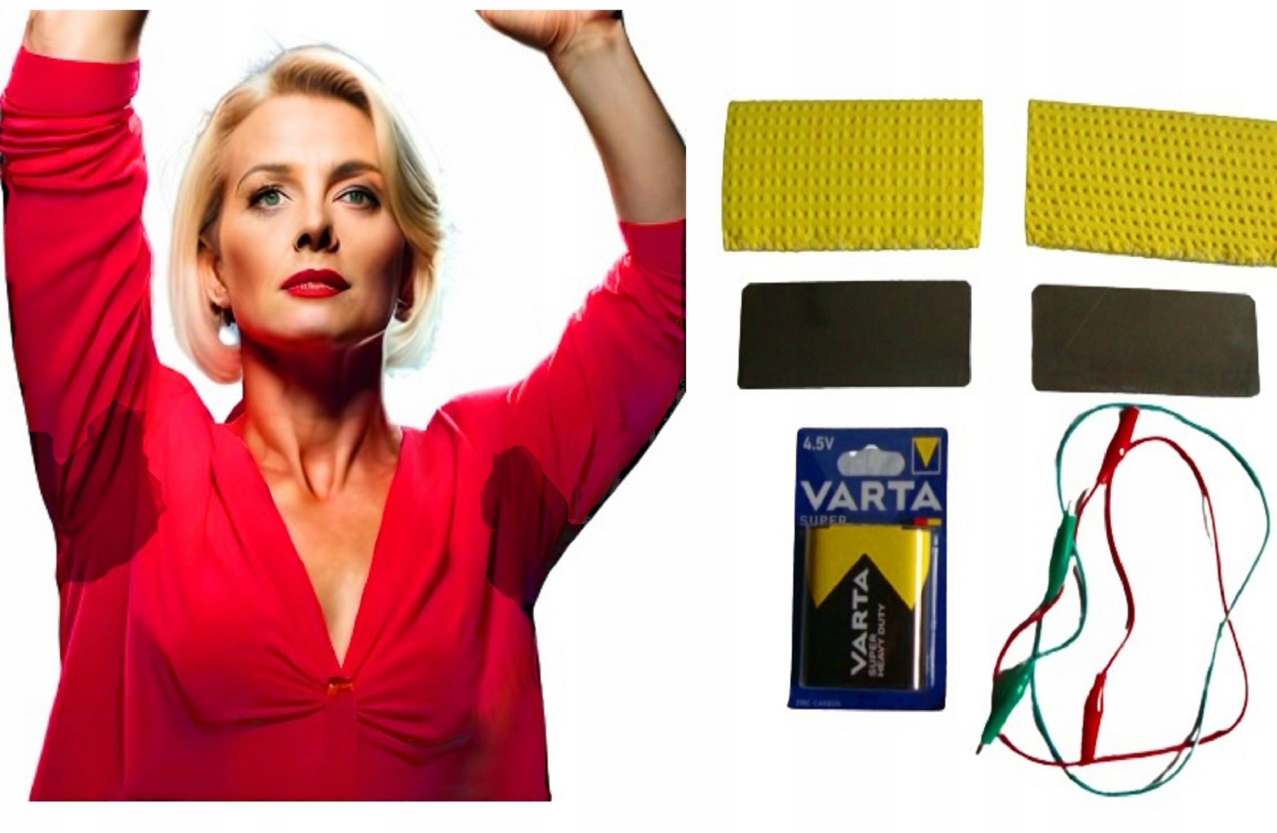 ⏩ Устройство включает в себя: батарею 4,5 В (3R12), крокодильные кабели, подмышки (губчатая под подмышки). 2 подмышки (2 пластины из нержавеющей стали) и короткое учебное видео на YouTube My Authorting вместе с пошаговым описанием, как правильно провести лечение дома.