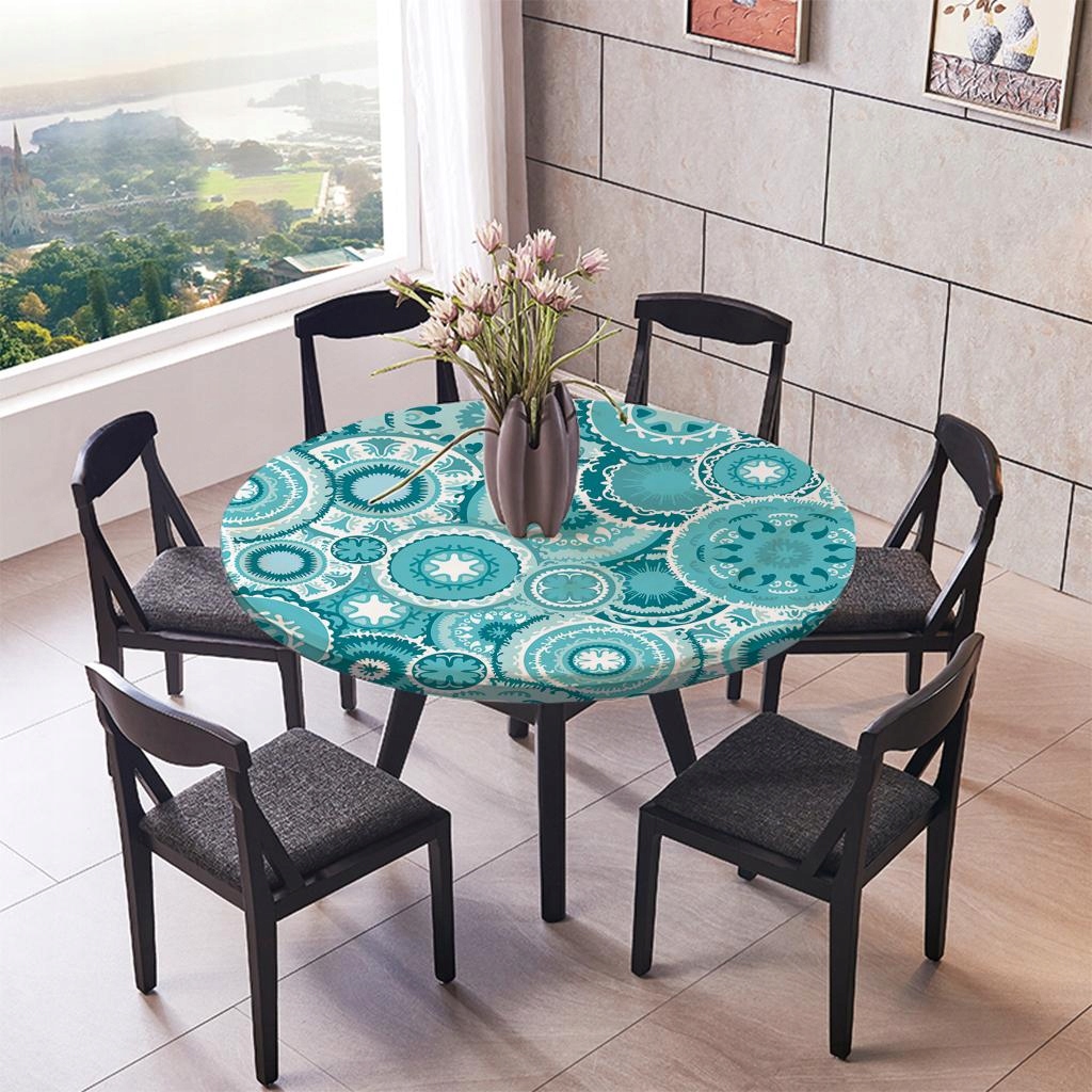 Водонепроницаемая противоскользящая круглая эластичная скатерть. Классический дизайн скатерти.