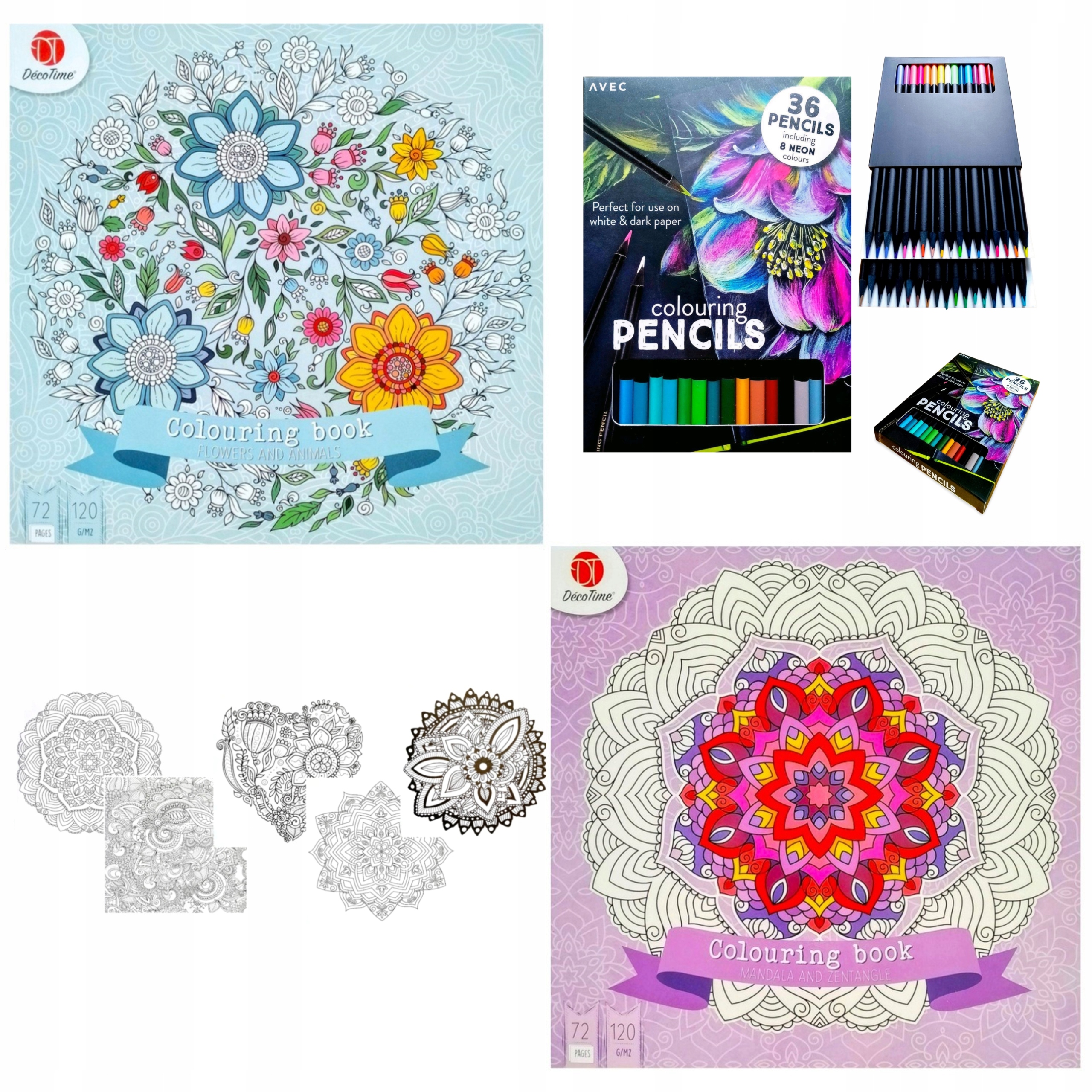 РАСКРАСКА АНТИСТРЕСС МАНДАЛА ДЛЯ ВЗРОСЛЫХ х2 + КАРАНДАШНЫЕ МЕЛКИ 36 ШТ
