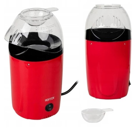 Попкорнница Hoffen PM-4207 позволит приготовить любимую закуску для детского праздника или праздника. вечера кино. Устройство позволяет готовить попкорн с использованием горячего воздуха, без добавления масла и жира. Он прост в использовании — просто насыпьте зерна в алюминиевую тепловую камеру и включите ее. Уже через две минуты вы сможете насладиться свежим и теплым попкорном. Для вашего удобства в крышке машины имеется встроенная мерная чашка для порционирования попкорна или растапливания сливочного масла, которое может стать вкусной добавкой к попкорну.