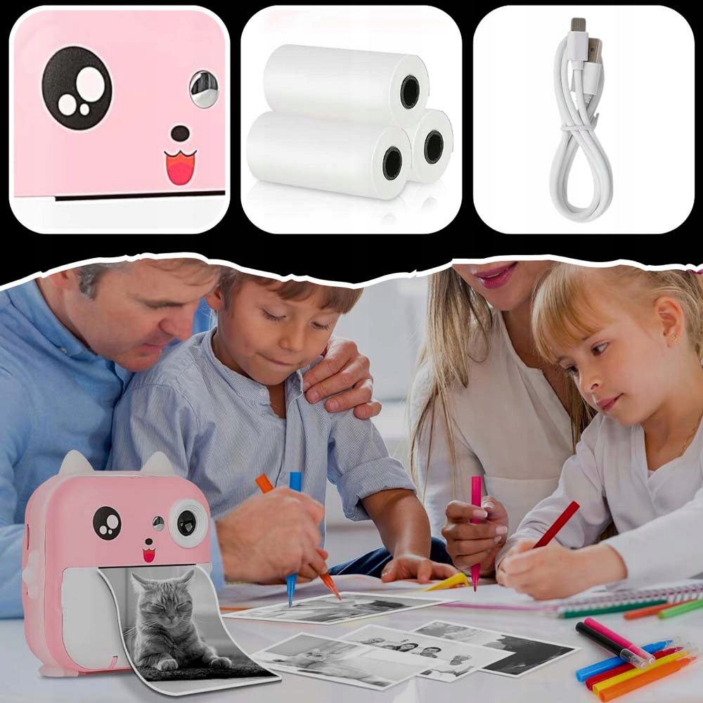 APARAT NATYCHMIASTOWY DLA DZIECI MINI DRUKARKA + 3 ROLEK