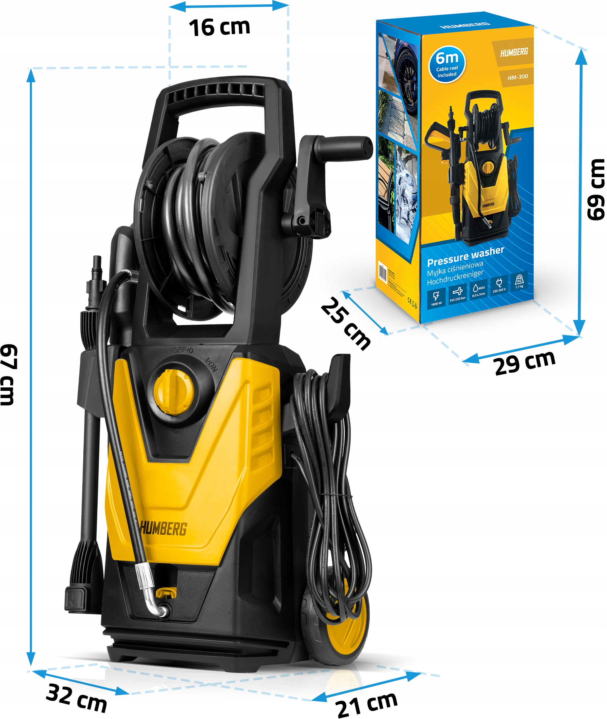 ✅ Катушка для шланга в верхней части конструкции мойки высокого давления.