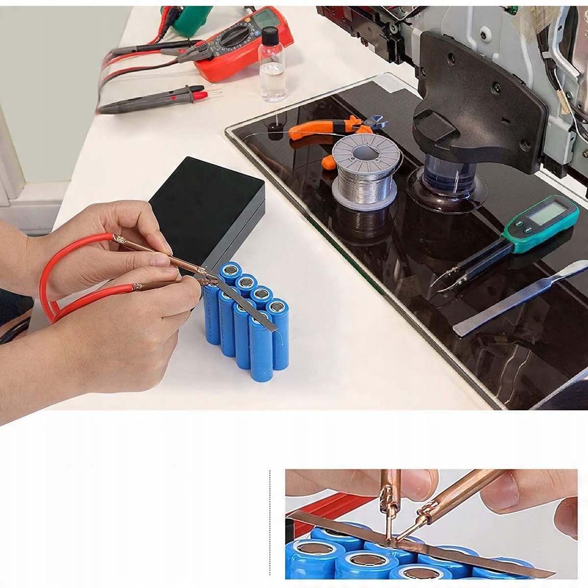➡️【Низкое энергопотребление и высокая эффективность】:Благодаря низкому энергопотреблению вам не придется беспокоиться о расходе заряда батареи во время выключения. Оснащенный высокоскоростной литиевой батареей, он может непрерывно сваривать тысячи точек после полной зарядки до никелевых пластин толщиной 0,1–0,15 мм.