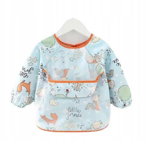 Практичный водонепроницаемый нагрудник с рукавами и карманом для сбора падающей еды и жидкостей.