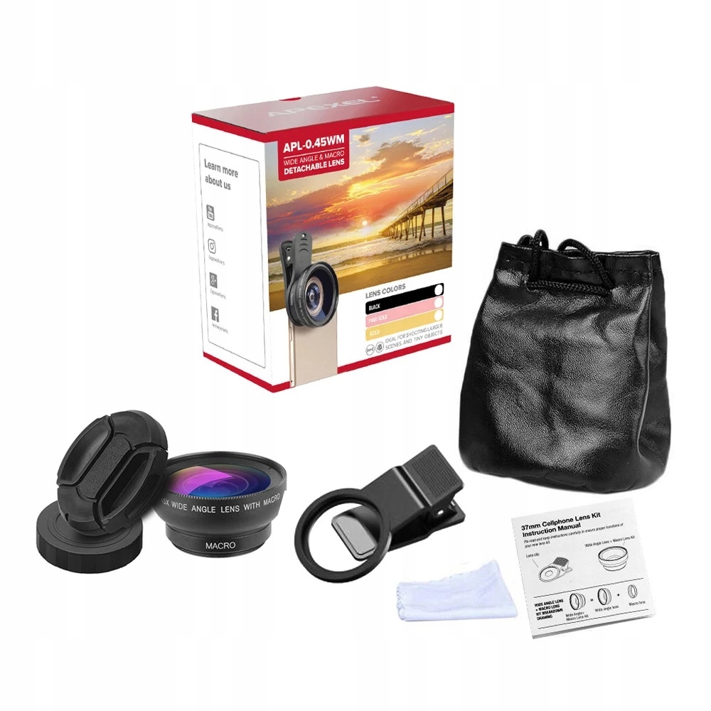 НАБОР APEXEL 2 В 1 ОБЪЕКТИВ ДЛЯ ТЕЛЕФОНА МАКРО + ШИРОКОУГОЛЬНЫЙ ОБЪЕКТИВ