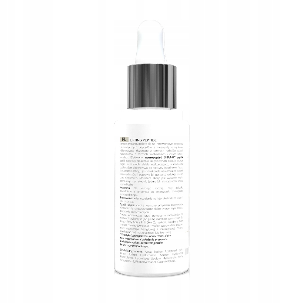 Apis - Lifting Peptide Hyaluron 4D – настоящая жемчужина в области ухода за кожей, сочетающая мощное действие биомиметических пептидов с необычной формой гиалуроновой кислоты с четырьмя различными размерами частиц. Он также содержит эффективный нейропептид SNAP-8™, который революционно блокирует сокращения лицевых мышц, действуя как альтернатива ботулотоксину. Благодаря этой инновационной формуле кожа становится прекрасно увлажненной на различных уровнях, а также приобретает плотность, сокращается мимические морщины и значительно повышается ее эластичность и упругость. Эффект? Гладкая, свежая и сияющая кожа.