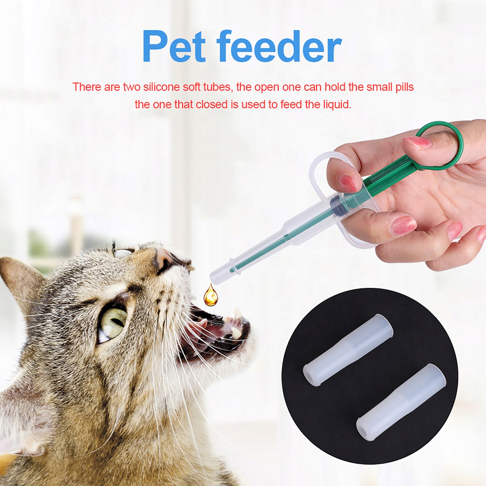 У вас есть проблема с кормлением вашего питомца препаратом? Трудно ли контролировать дозы и беспокоиться о том, чтобы повредить вашему питомцу, если он работает неправильно? Что ж, получите этот дозатор для животных с круглой головой, и все ваши проблемы будут решены. Изготовленный из пластика с качеством пищи, он мягкий, безопасный и удобный в использовании. Дизайн шприца облегчает принятие препарата, помогает животным проглотить лекарство и контролировать дозировку. Более того, 2 силиконовые трубки прикреплены к изменениям. Строительство с двойным отверстием облегчает работу и экономит проблемы и усилия. Это абсолютно сэкономит время и отличный помощник для вас !!!