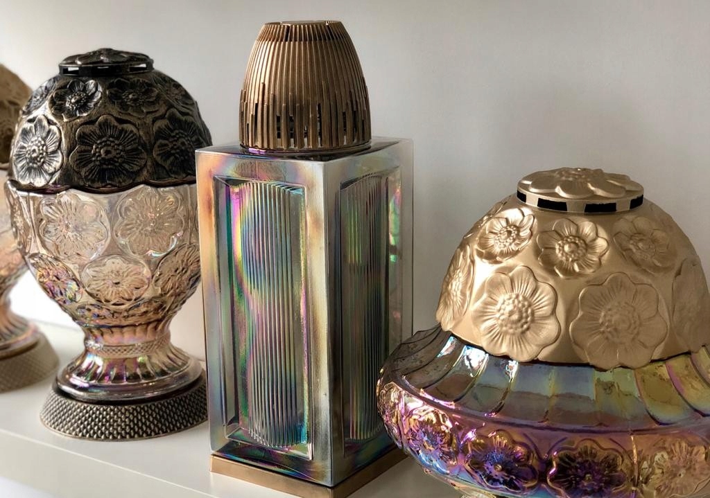 Свеча из радужного стекла в сочетании с материалом высочайшего качества