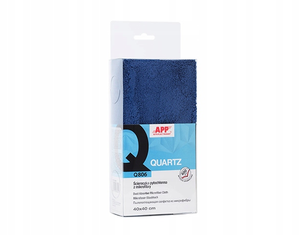 APP QUARTZ Q806 — специализированная салфетка из очень мягких микроволокон, предназначенная для окончательной полировки лакокрасочного покрытия. Первоначально он выполняет свою функцию по удалению остатков полировальных паст, а также по нанесению и полировке всех типов полиролей, восков или средств быстрой детализации. Края полотна не отделаны материалом, но они очень мягкие и не оставляют царапин на краске. Благодаря своему весу салфетка APP QUARTZ Q806 обладает высокой впитывающей способностью и может быть использована также для сушки кузовов автомобилей во время мойки.