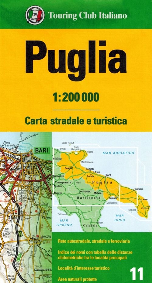 Складка, одна карта автомобильной карты Apulia по шкале 1: 200 000 Touring Editore Publishing House H2>