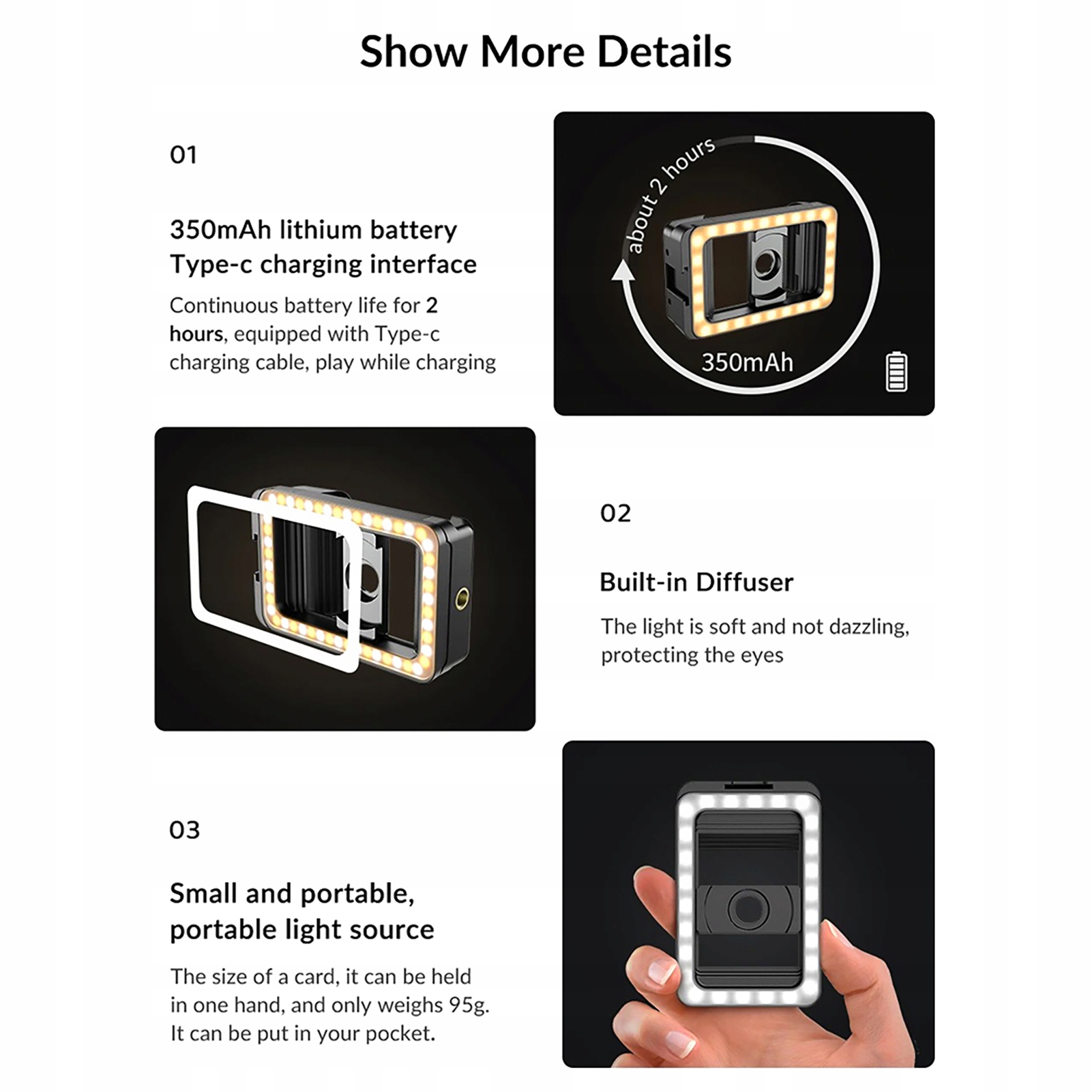 - 【Универсальная совместимость】 Благодаря двойному интерфейсу 17 мм + 37 мм этот зажим для телефона с заполняющей подсветкой позволяет легко соединить его с различными объективами и фильтрами для смартфонов.
