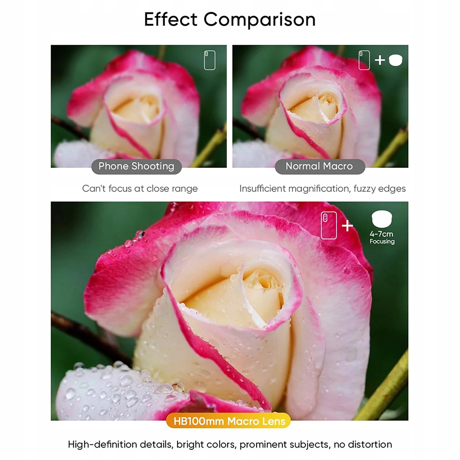 - 【Макролинзы в комплекте】Входящий в комплект макрообъектив имеет большую диафрагму, благодаря чему точечный источник света может выглядеть близко к эффекту кругового размытия, что обеспечивает мягкий и естественный эффект размытия фона при макросъемке. Подходит для съемки цветов, растений, насекомых, ювелирных изделий, продуктов питания, косметического макияжа, деталей жизни, мелких предметов и т. д.