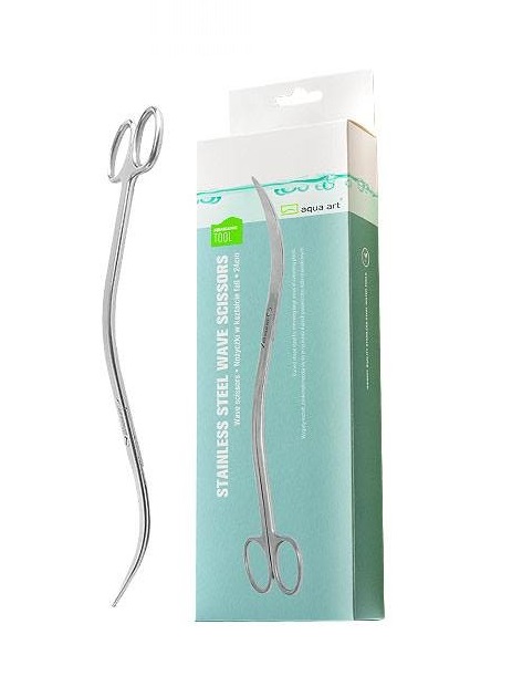 Тип ножниц: ВОЛНА - 24 см - высококачественные ножницы волнообразной формы для ухода за низкорослыми растениями переднего плана. Ножницы из нержавеющей стали идеально подходят как для ухода за растениями, так и для других действий, связанных с уходом за аквариумом. Нежные длинные волнообразные ножницы идеально подходят для точных операций на дне аквариума, например, при обрезке низкостебельных растений. Высокое качество. Элегантная упаковка - идеален в качестве подарка.