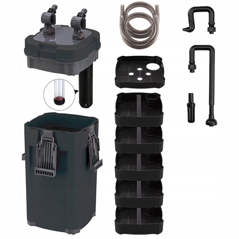 Благодаря высокой емкости, в пяти корзинах вы будете соответствовать всем необходимым фильтрам. В наборе вы найдете губку и керамику, которая обеспечивает комплексную многоэтажную фильтрацию и чистоту воды в аквариуме с вместимостью до 500 литров.