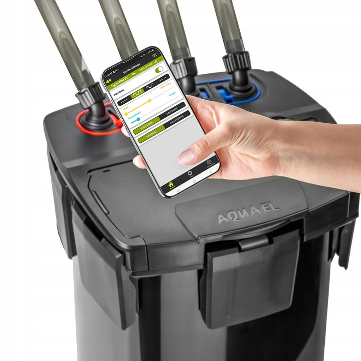 Мобильное приложение Aquael aqu@rium позволяет удаленно управлять фильтром. Он прост в использовании и имеет дружественный интерфейс. Интересным решением является опция совместного использования, которая позволяет управлять фильтром с разных устройств, например. вся семья. Но вы легко можете заблокировать эту опцию с помощью ПИН-кода. Приложение позволяет полностью контролировать функции фильтра, не подходя к аквариуму. Вы можете удаленно включать и выключать фильтр или регулировать силу потока на экране смартфона.