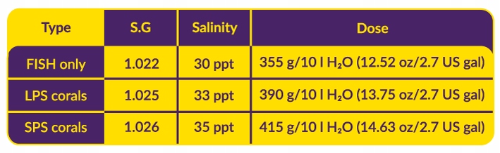 ✔️ Для получения солености 33 ppt (1,025 S.G) растворите 390 г в 10 л воды RODI.