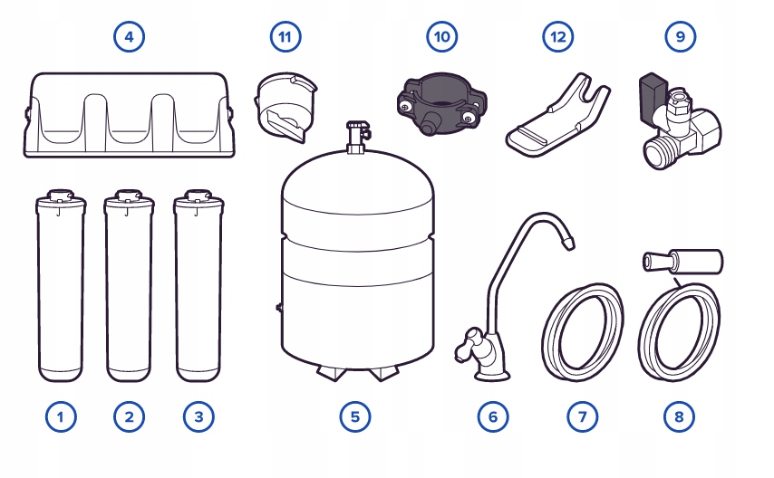 Удаляет из водопроводной воды все загрязнения, включая хлор, органические соединения, тяжелые металлы, нитраты и нитриты, жесткость, бактерии и вирусы.
